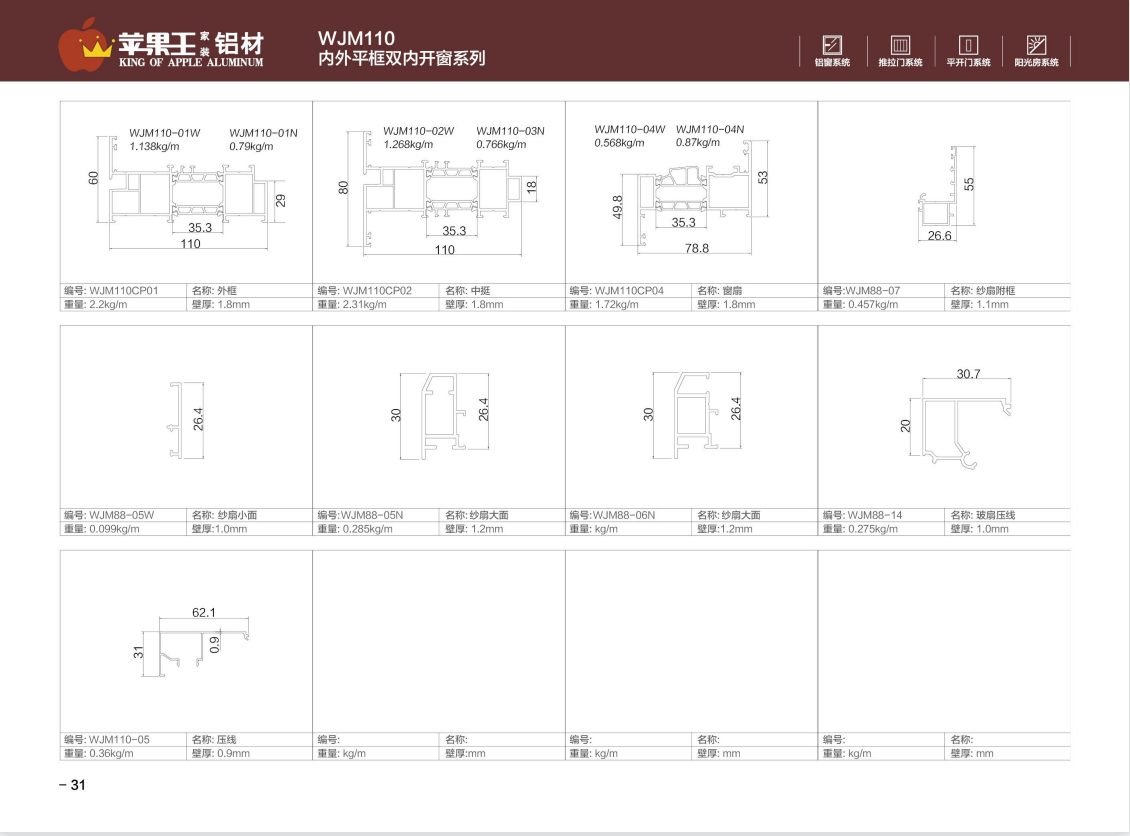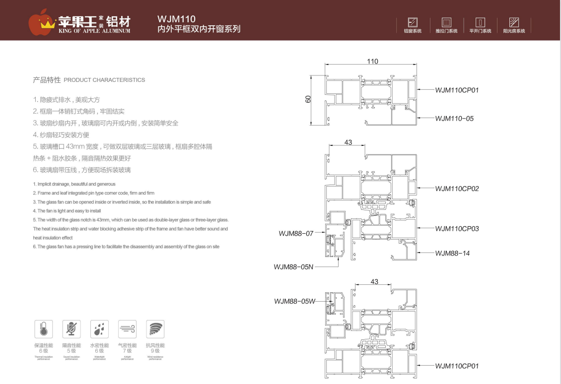WJM110内外平框双内开窗系列