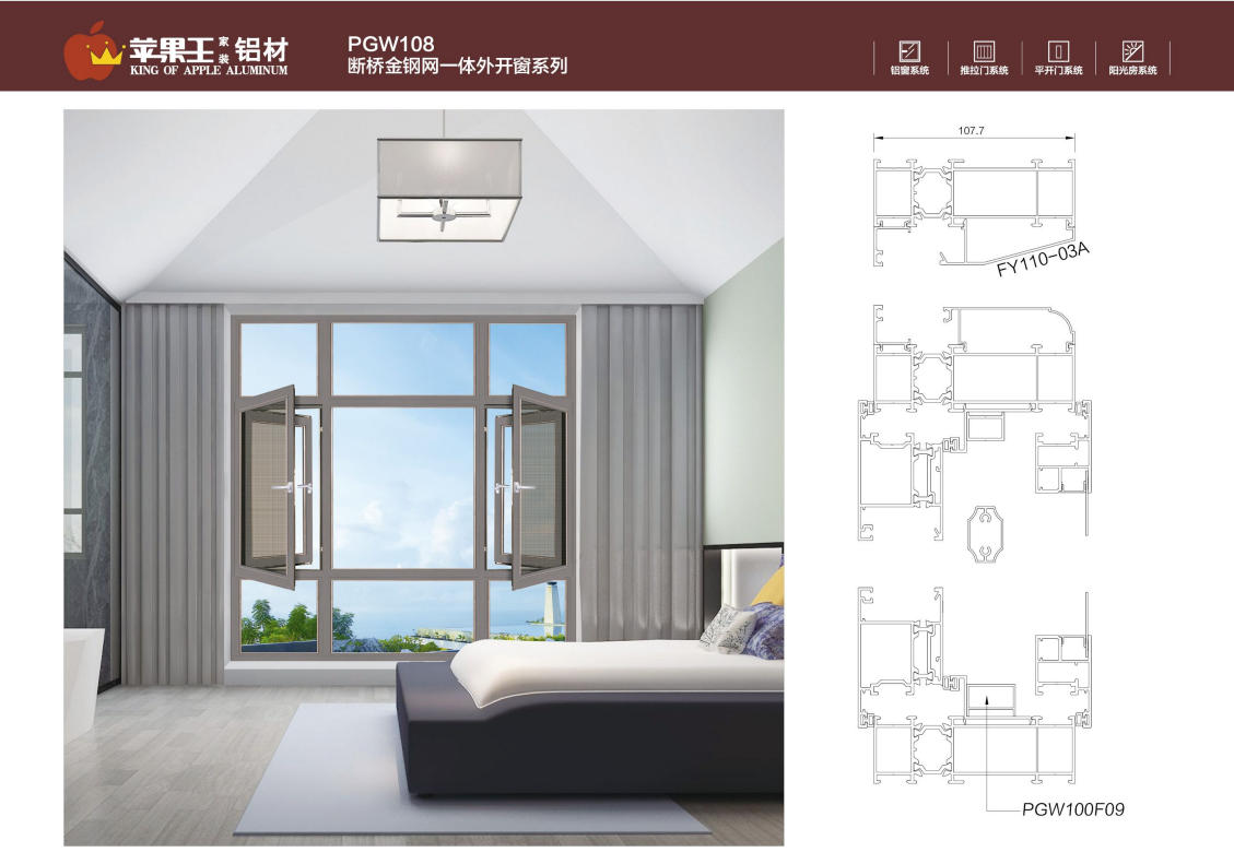 PGW108断桥金钢网一体外开窗系列
